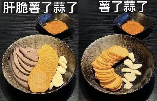 这种鲜活,更多源于人们对传统味觉秩序的一次重构。在经典的美食体系中,风味搭配讲究一个和谐与平衡。而“肝脆蒜了”却有种反其道而行之的韵味,它刻意选取了分属不同味觉象限、本来谁和谁也不搭边的食材。
